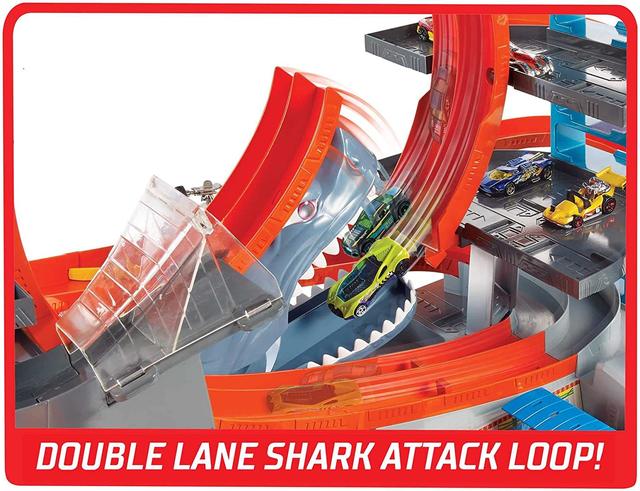 Запускайте машини по двосмуговому зашморгу назад в Hot Wheels City, інакше вас з'їсть акула.